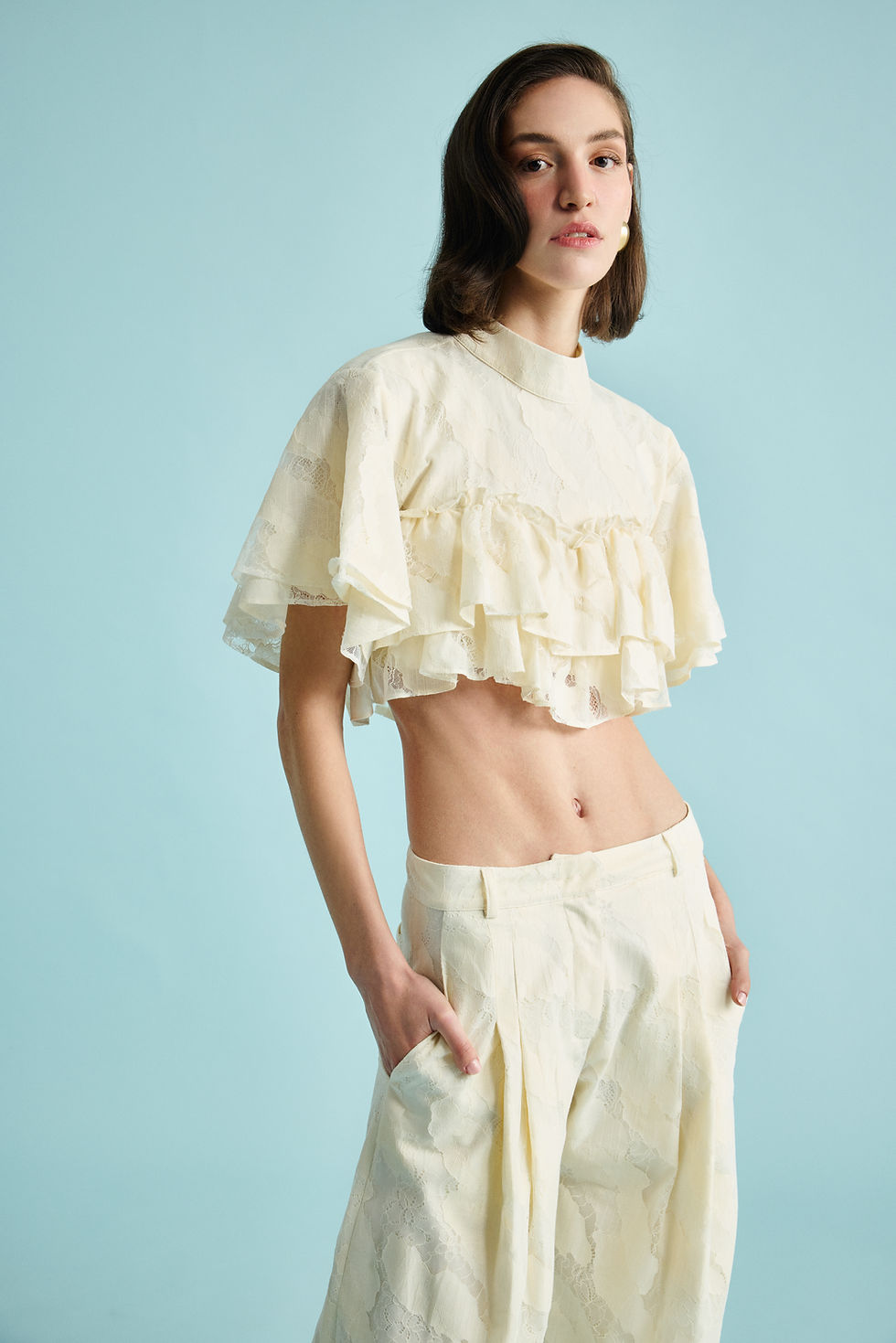 Yumuşak tonları ve zarif nakış detaylarıyla öne çıkan mini şort, yaz stiline hafif ve feminen bir dokunuş katıyor. Minimal formu, ince grid deseni ve altın tonlu işlemelerle zenginleşerek modern bir görünüm sunar.